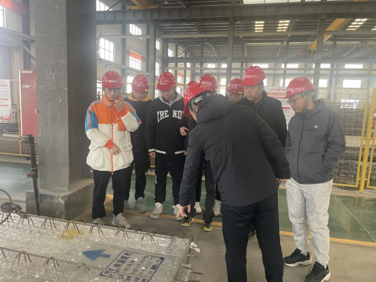 随后双方举行了校企党支部共建签字仪式及校企合作基地授牌仪式。授牌仪式结束后,大家来到公司生产厂区,对该公司装配式构件深化设计、生产过程、质量检验等方面进行了“零距离”参观调研,席亚杰向同学们进行了装配式建筑生产的现场教学,师生在生产一线畅所欲言,无隔阂交流,收获满满,真正践行了“现场工程师”建设理念。