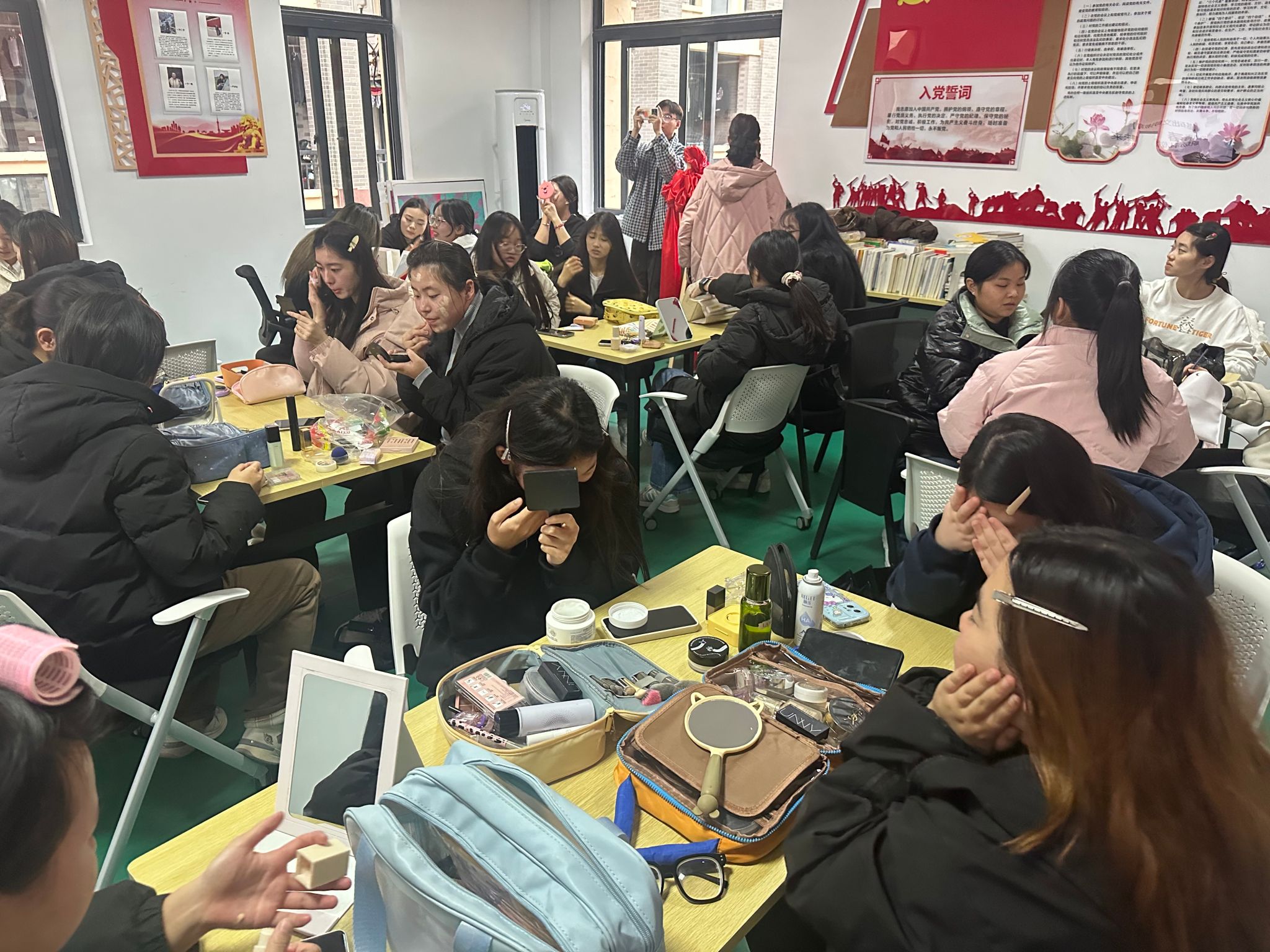 为提升学生审美能力,展现青春自信,掌握职场礼仪,12月15日下午,在“一站式”学生社区活动室举办了“妆点青春,礼靓未来”职场礼仪微讲堂活动,建工学院22级部分女同学参与。此次微讲堂活动邀请了纺织服装学院化妆课任课教师何婷婷主讲示范。