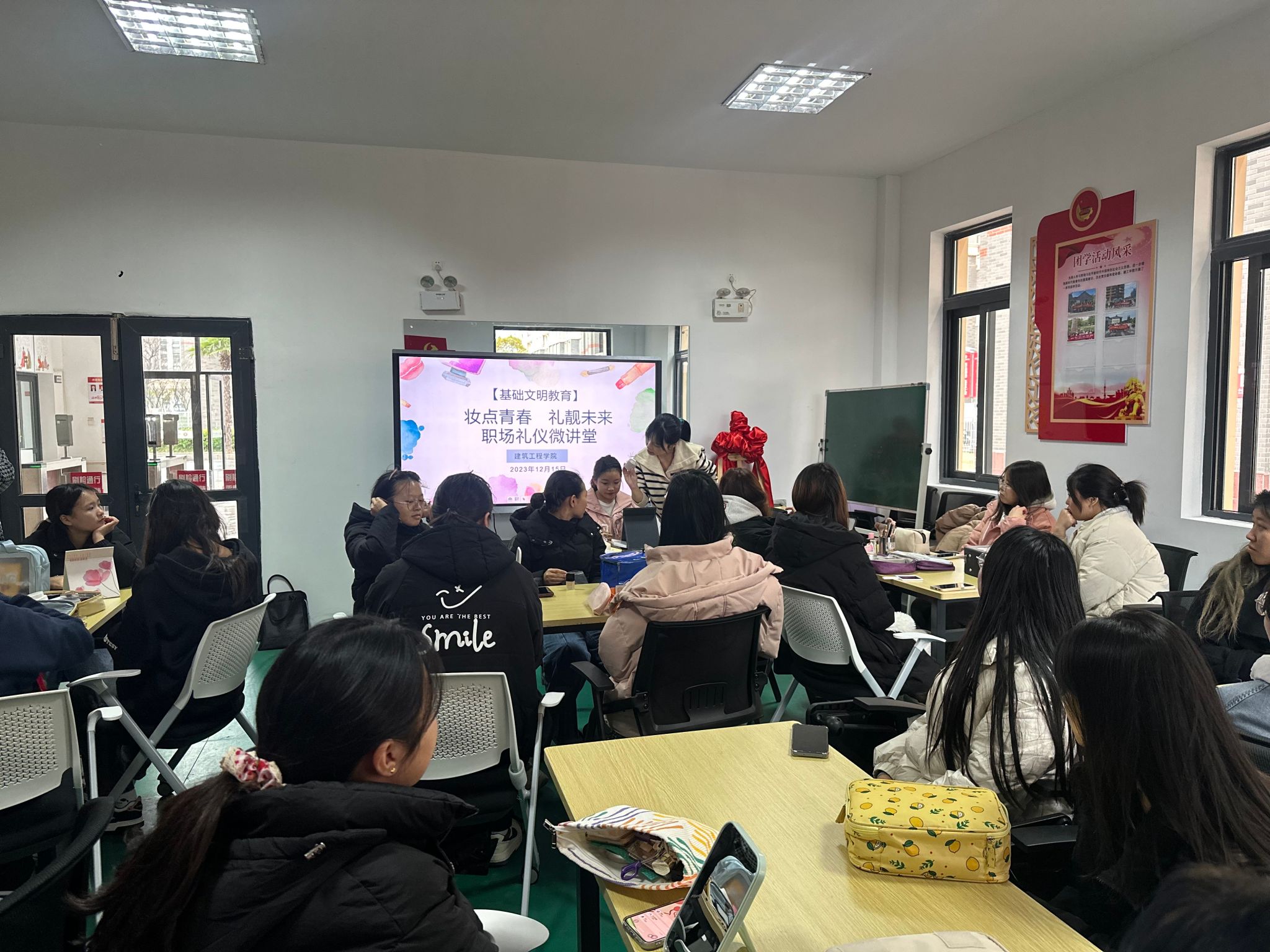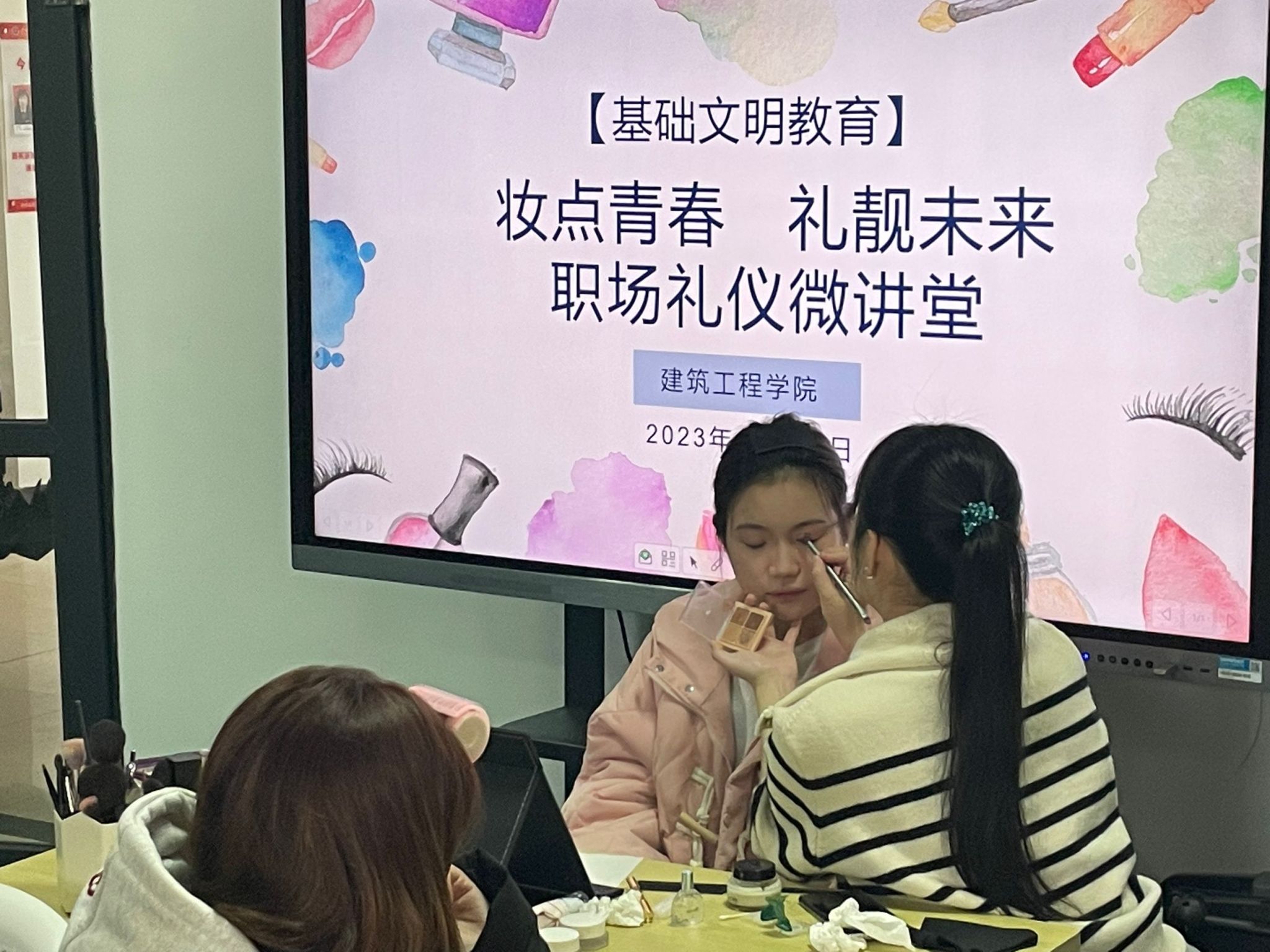 举办本次“妆点青春,礼靓未来”职场礼仪微讲堂活动,旨在通过“青春微讲堂”这种形式,让同学们更加了解职场妆容如何化,掌握职场礼仪,完善职业形象,进一步提高未来求职道路上的竞争力。(建筑工程学院 李文君 /文图 周华 /推荐 白林/审核)