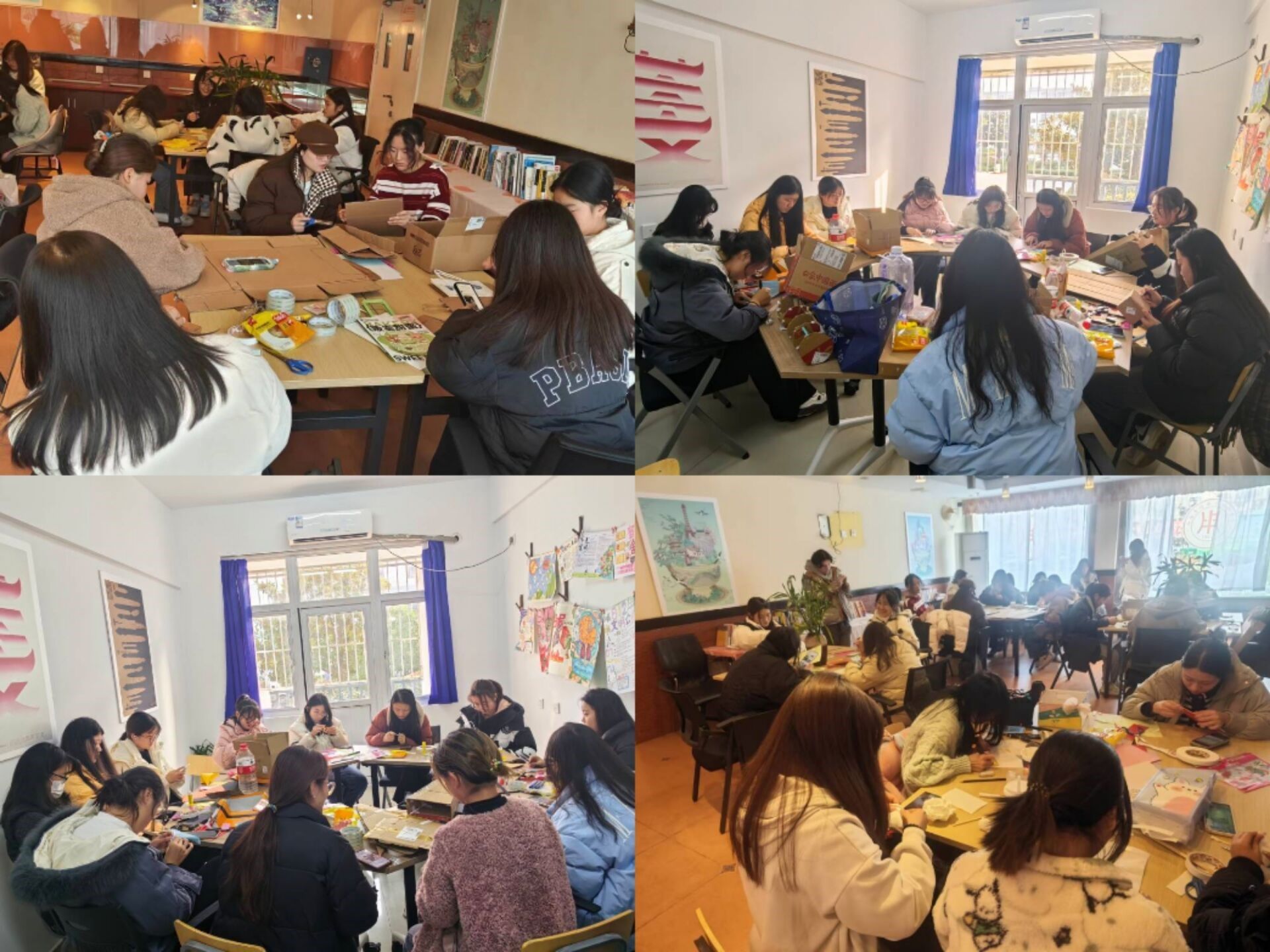 在前期的积极宣传下,当天不少同学自带工具材料提前来到约定的社区活动室。工作人员宣布活动开始后,同学们便迅速动手制作起来。有的拿着画笔在认真绘画,有的拿着剪刀在仔细裁剪,有的在跟队友热烈讨论,现场气氛欢乐又热烈。在同学们的奇思妙想下,原本废旧的纸板、包装盒变成了漂亮的发音盒、可爱的桌饰、精巧的储物箱,这让前来观看的同学连连称赞。成果展示后经线上投票,最终两校区各评出一等奖两位、二等奖五位、三等奖七位以及优秀奖十位。