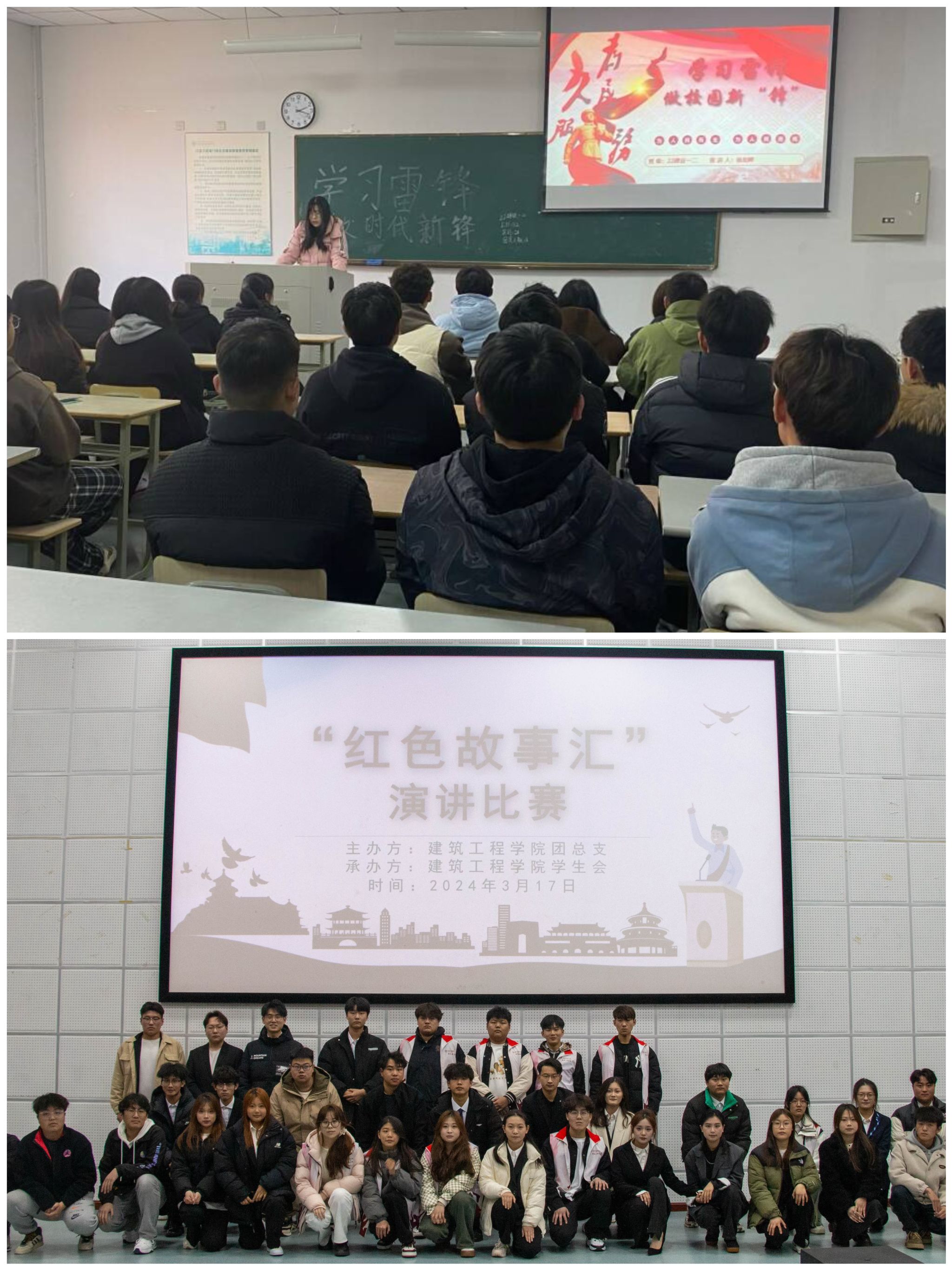 建筑工程学院在海门校区开展“赓续雷锋精神,争做时代新人”开学第一课暨升旗仪式、“青春微讲堂—红色故事汇”演讲比赛和“学习雷锋,做校园新‘锋’”主题团课评比活动。活动围绕雷锋精神主题宣讲、共话雷锋事等开展,“人人学雷锋、人人做雷锋”的互助氛围在校园里蔚然成风。