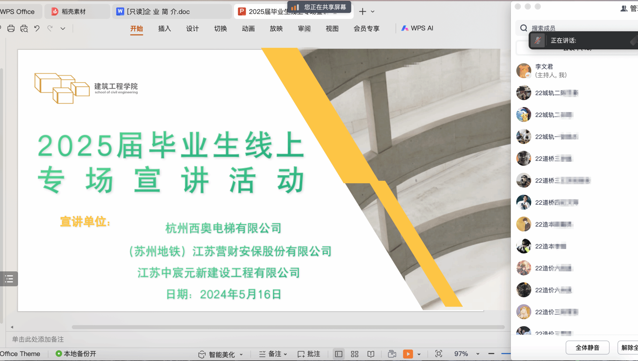 为进一步拓宽毕业生就业渠道,尽早推动2025届毕业生就业服务工作,5月16日,建筑工程学院通过线上会议形式邀请非在通企业举办实习+就业线上宣讲会,学院2022级学生和部分家长共同参与本次活动。