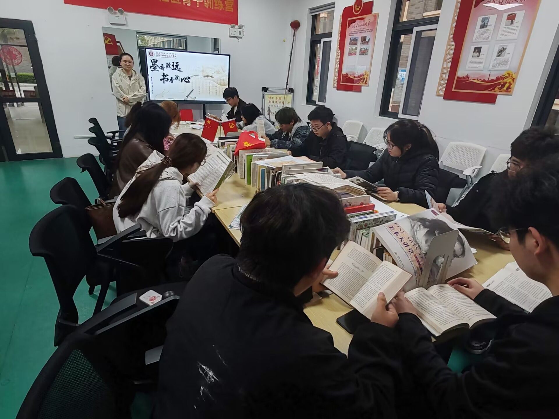 为帮助家庭经济困难学生丰富课余生活,4月16日,建筑与交通工程学院励志社在一站式学生社区举办了“墨香致远·书香润心”读书会活动。辅导员成彦萱、励志社成员和家庭经济困难学生参加了读书会活动。