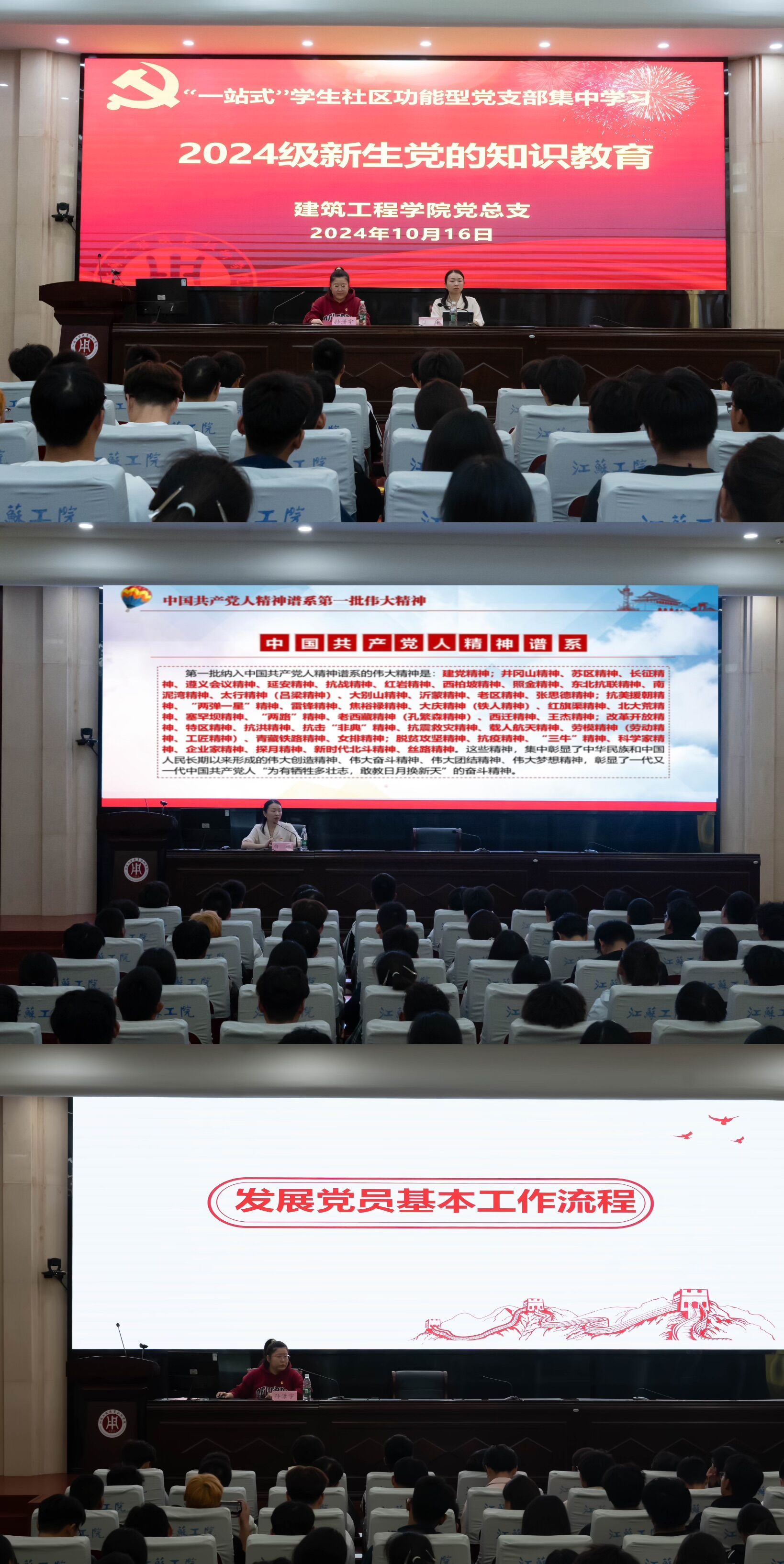 为引导青年学生坚定理想信念、践行责任担当,进一步团结引领青年学生坚定不移听党话、跟党走,10月16日,建筑工程学院党总支联合“一站式”学生社区功能型党支部在海门校区开展中国共产党人精神谱系学习宣讲活动暨2024级新生党的知识教育学习活动。