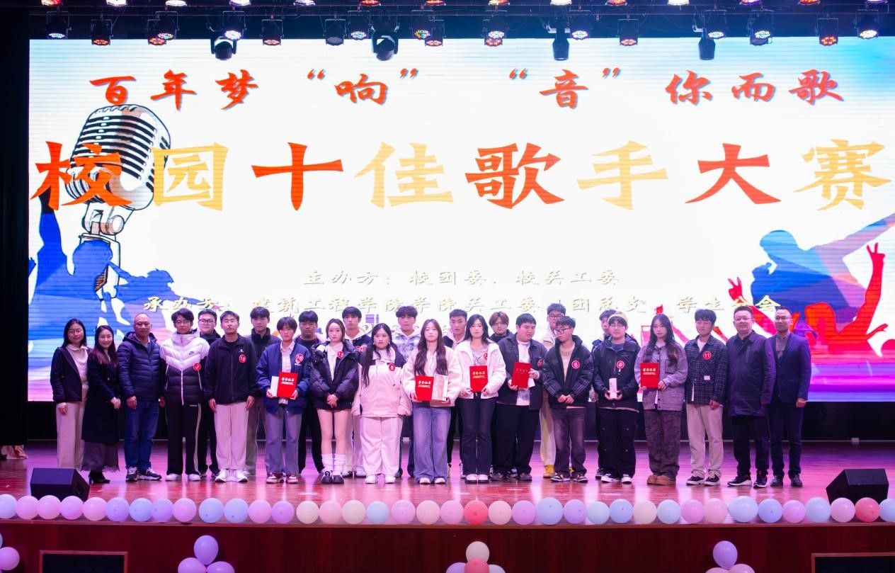 经过一个多月的激烈比拼,21名选手脱颖而出,站在了校园十佳歌手决赛的梦想舞台。本次比赛分为“十强争霸赛”以及“三强排位赛”两轮进行。选手们各展风采,将歌曲演绎得淋漓尽致。他们的精彩表演掀起比赛一次又一次高潮,观众们挥舞着手中的荧光棒为选手们加油喝彩,欢呼声和掌声经久不息。最终,建筑工程学院24轨道交通一班赵钰驰获得冠军,航空与交通工程学院24城轨运营姚欢获得亚军,建筑工程学院工程造价三班王政贺获得季军。王紫倩、苏新皓、黄哲、夏经满、匡梦妍、凌雨、尹天元等同学荣获“十佳歌手”的称号。在大赛表演环节,由关工委教师代表龚媛娟指挥、王荣芳、杨晓红、袁丽萍、成悦、吴桂香演唱的合唱歌曲《梅花赋》《年轻的朋友来相会》引发了全场热烈的掌声。