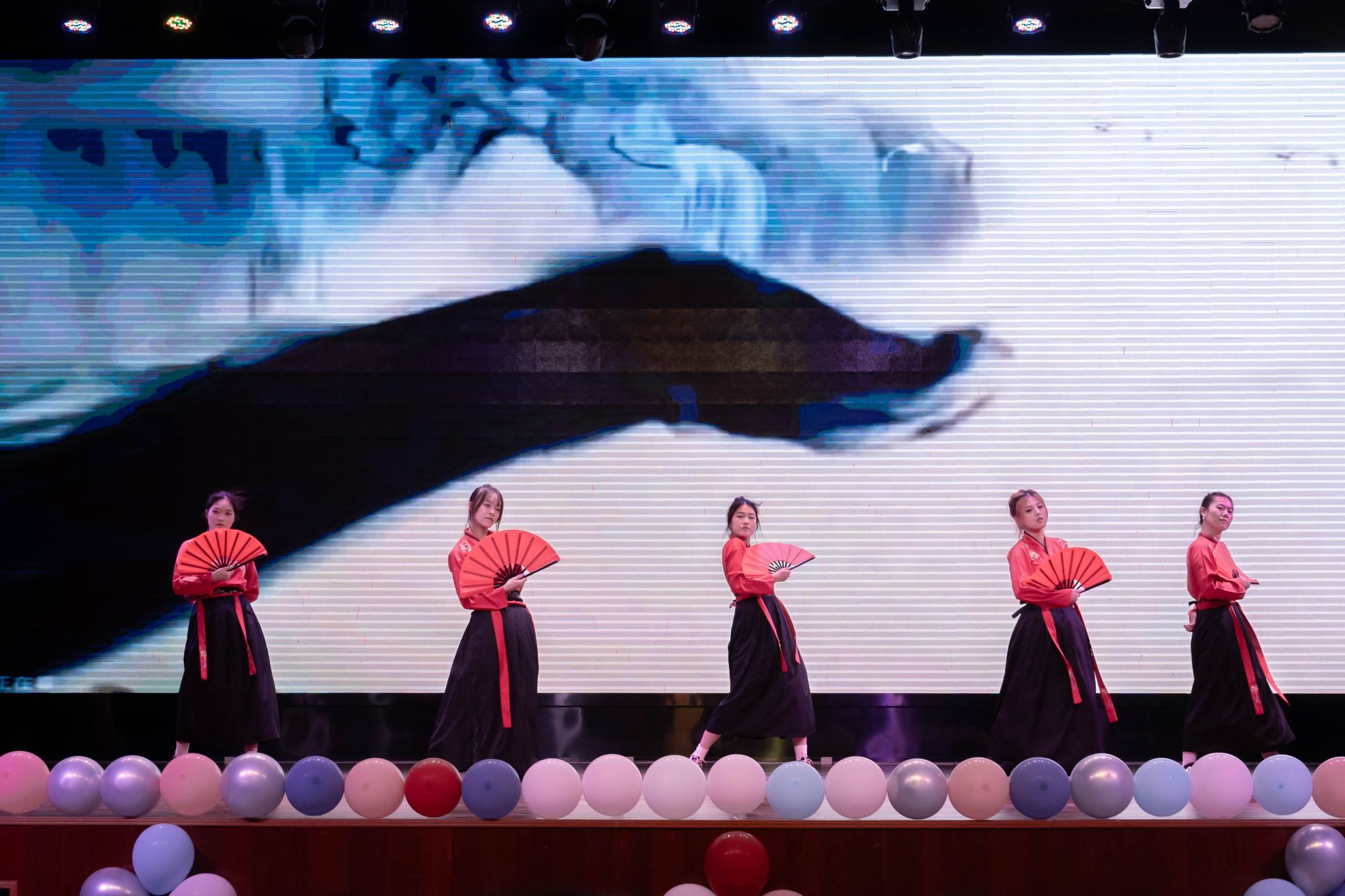 晚会分为“青春如火,灼耀前行”“舞美雅韵,家国恒爱”“青春燃梦,工院筑光”等三个篇章,以弘扬家国情怀为主线,同时融合青春活力元素,通过歌舞、合唱、情景剧、朗诵等丰富多样的艺术形式,为新生带来了一场视听文化盛宴。情境舞蹈《点点红》拉开了晚会的序幕,通过现代舞描绘了革命战争年代点点红色汇聚成燎原之势,点燃民众奋起抗争的决心与意志的情景;歌曲《重返17岁》充满了对校园和青春的美好幻想;小品《一起去旅行》诙谐幽默、贴合现实生活,引来观众的阵阵欢笑;舞蹈《巴啦啦小魔仙》展现了最火热的青春和最炙热的激情;歌曲《大鱼》优美轻快,唱出了青年学生对美好生活的向往;齐舞《骁》展现了中华儿女的豪情壮志;乐队歌曲《写给黄淮》唱出了对未来的憧憬和对理想的坚定;情景剧《钱学森》演绎了钱学森胸怀祖国人民、勇攀科学高峰的情节,生动展现了老一辈科学家用毕生经历所诠释的科学家精神;空乘礼仪表演《礼仪操》展示了空乘礼仪的独特魅力;歌曲联唱《那个远方》《有我》《奔跑》,以激昂的旋律和鼓舞人心的歌词,唱出了青年学生不畏艰难、勇往直前的精神。