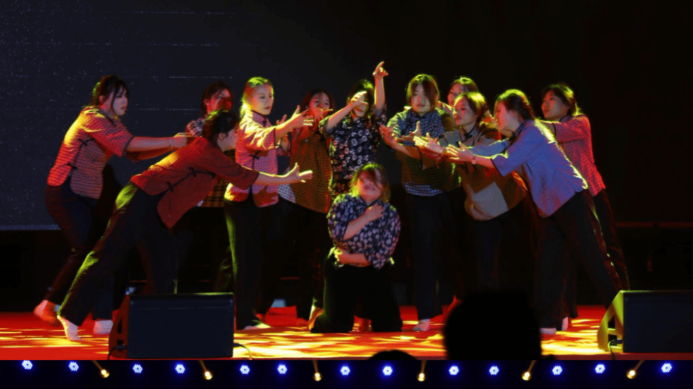 学院领导班子成员和学工团队精心准备了教师节目为新生送上祝福。白林、吴颖、徐保玮、孙潇宇、张正维、袁媛等老师共同为学生表演了歌曲串烧。24级新生班主任集体朗诵《七十五载,巍巍中华》,用真挚饱满的情感抒发了对祖国的无限热爱与忠诚。老师们的节目把对新生的关爱与希冀融入表演中,将整场晚会的气氛推向高潮。