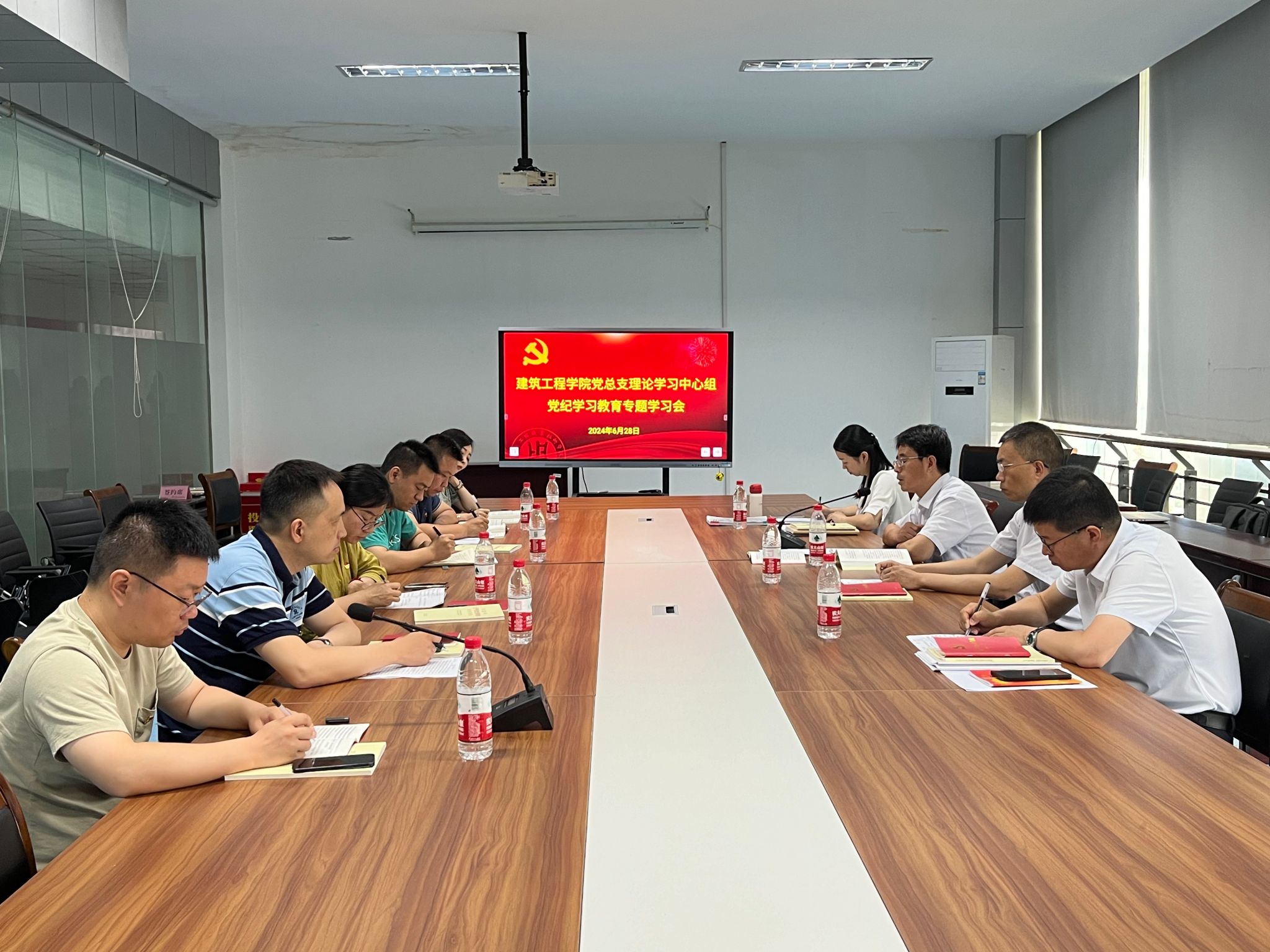 6月28日,建筑工程学院党总支理论学习中心组召开党纪学习教育专题学习会,校党委委员、副校长郭江峰,校纪委委员、机关党总支书记刘骏全程巡学旁听。会议由建筑工程学院党总支书记白林主持,理论学习中心组全体成员参加了学习会。